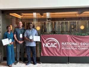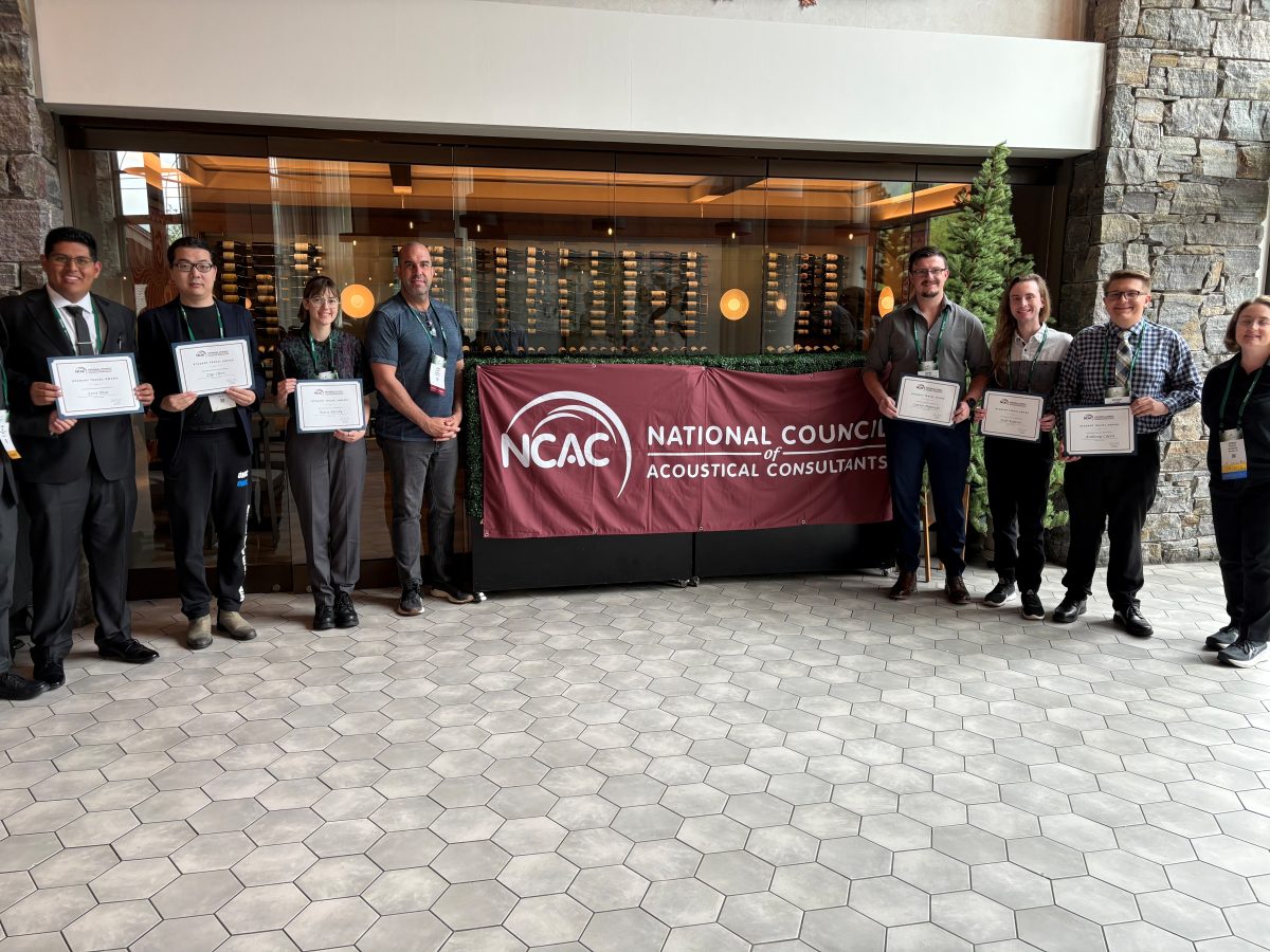 The following students were recognized by NCAC with Student Travel Awards at Noise-Con 2025 in Stowe, Vermont. NCAC President Jesse Ehnert, Arpeggio, and Vice President of Finance Jessica Clements, SmithGroup, presented the awards.